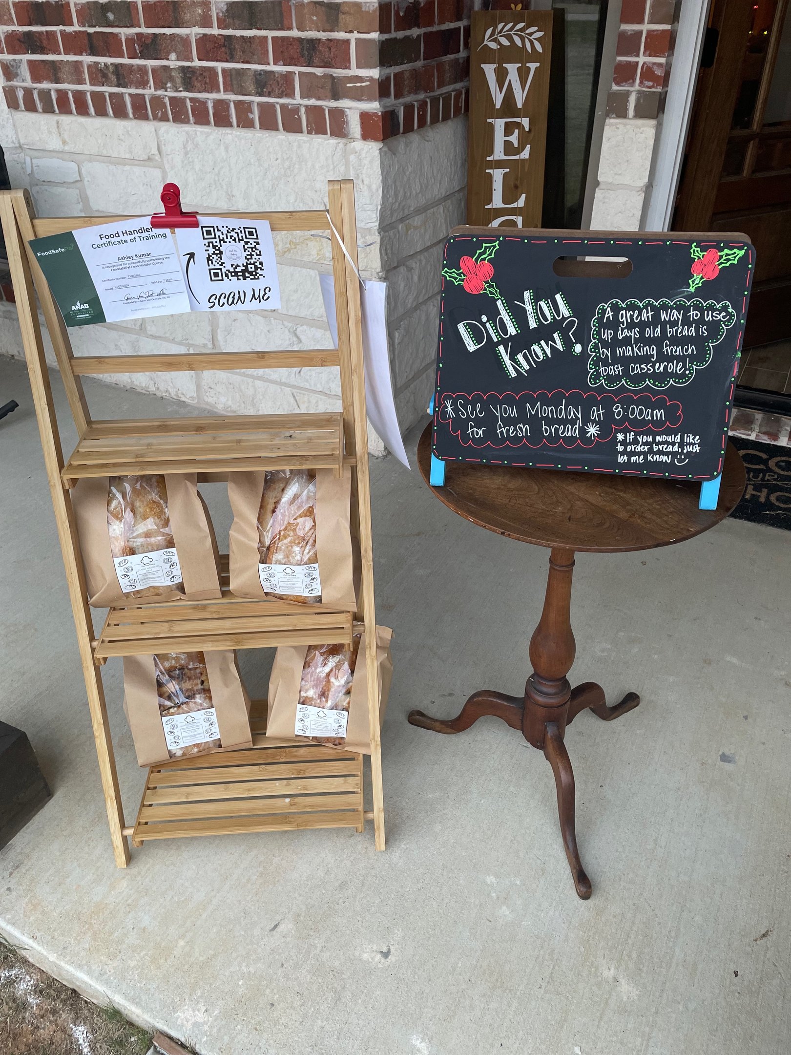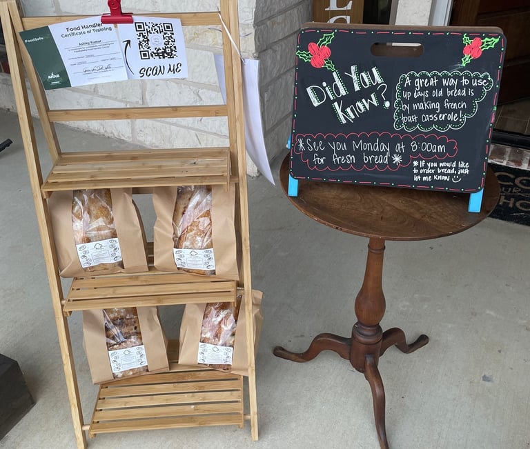 We are a small home-based bakery located in the heart of a quaint town named Combine, TX. Known for its vast landscapes and charming neighborhoods, we create everything from scratch, utilizing an organic Sourdough starter to produce our final baked goods. We only use top-quality organic flour, with no additional ingredients—just three simple elements: flour, salt, and water.